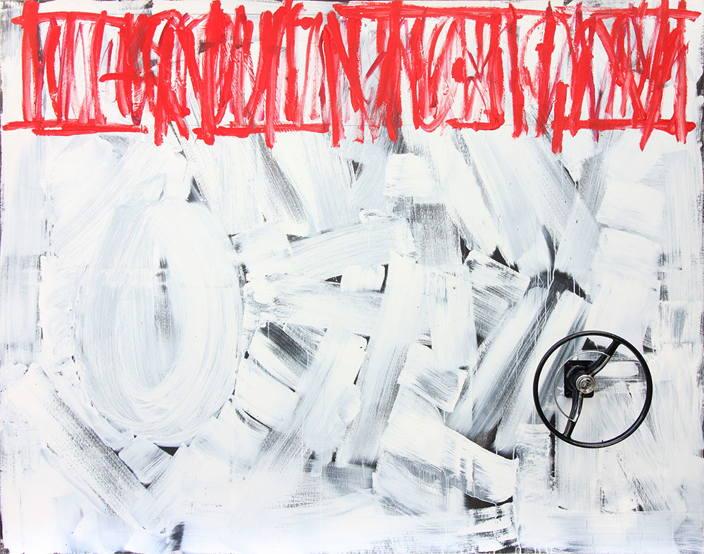 Acrylic on canvas and a steering wheel, 200cm x 250cm